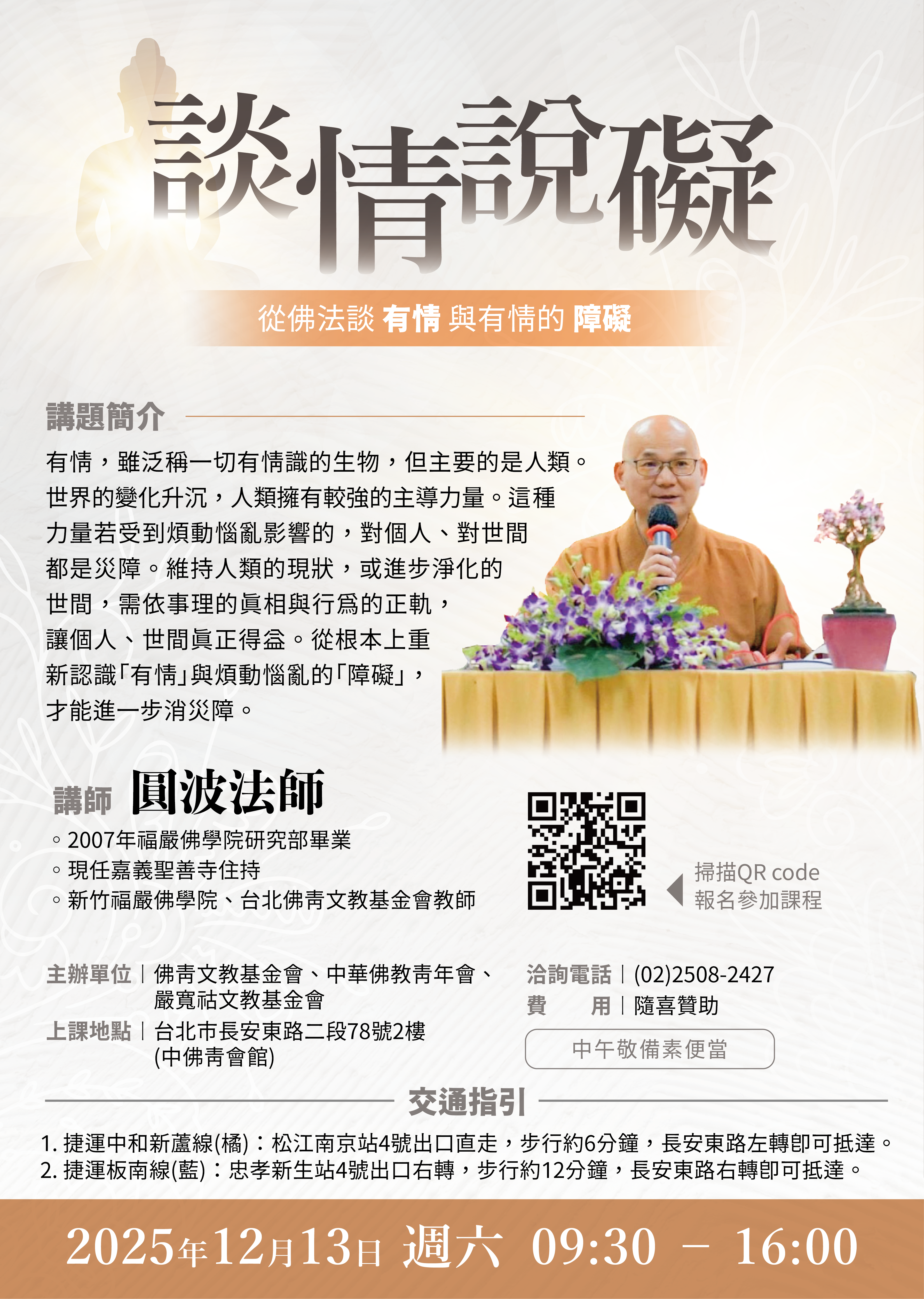 《談情說礙》 講座 ― 從佛法談「有情」與有情的「障礙」 圓波法師主講